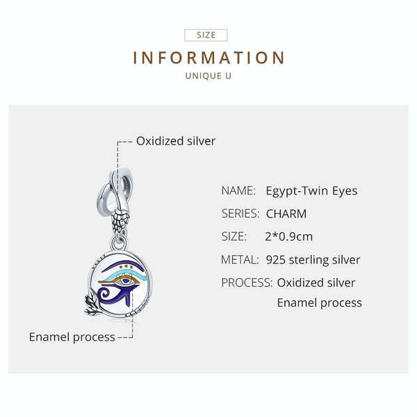 S925 Sterling Silver Egyptian Twin Eyes Pendant DIY Bracelet Necklace Accessories