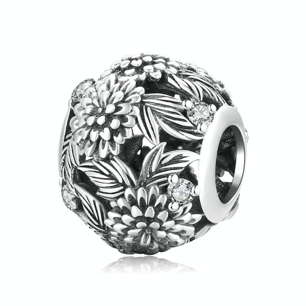 S925 Sterling Silver Embossed Flowers Beads DIY Bracelet Necklace Accessories