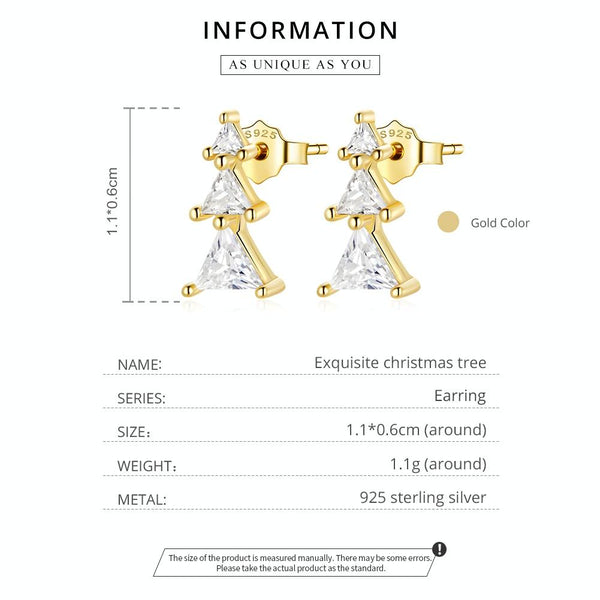 S925 Sterling Silver Exquisite Christmas Tree Ear Studs Women Earrings(Silver)