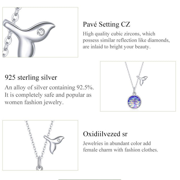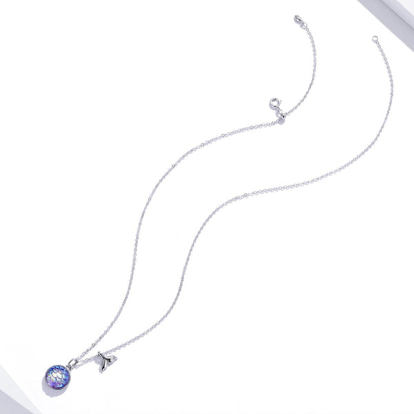 S925 Sterling Silver Fish Tail Colorful Scales Women Nacklace Jewelry