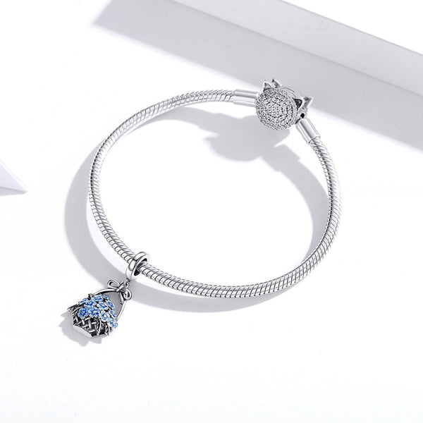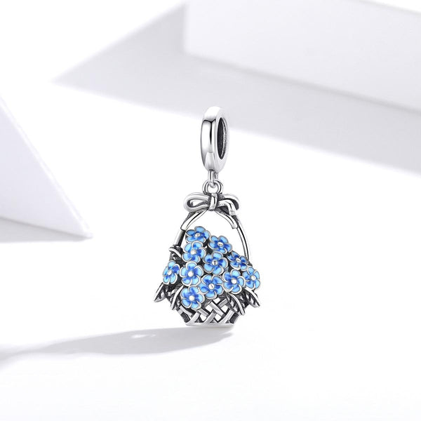 S925 Sterling Silver Flower Basket Blue Flowers Pendant DIY Bracelet Necklace Accessories