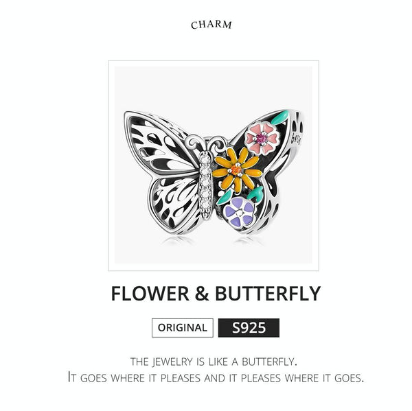 S925 Sterling Silver Flower Butterfly Beads DIY Bracelet Necklace Accessories