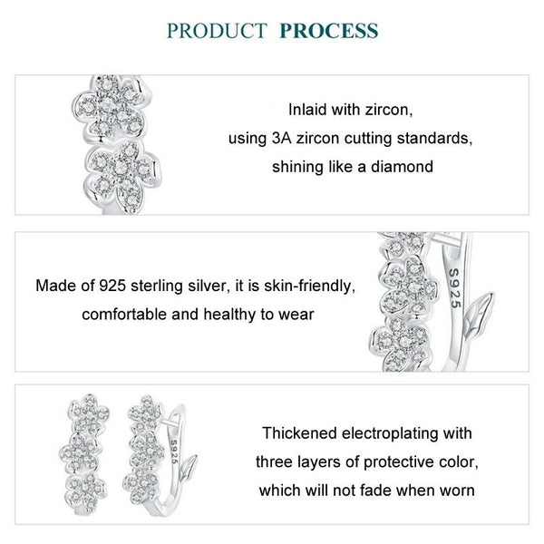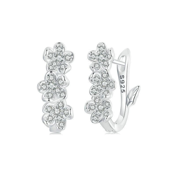 S925 Sterling Silver Flower Zircon Earrings(BSE982)