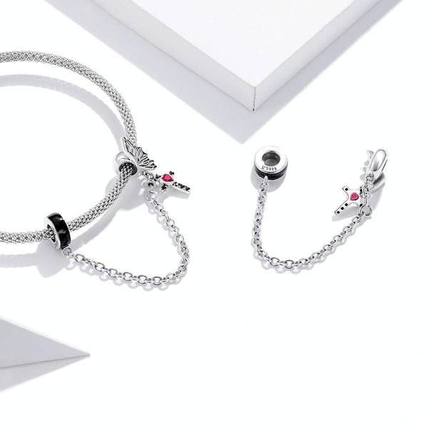 S925 Sterling Silver Flying Wing Cross Safety Chain DIY Bracelet Necklace Accessories