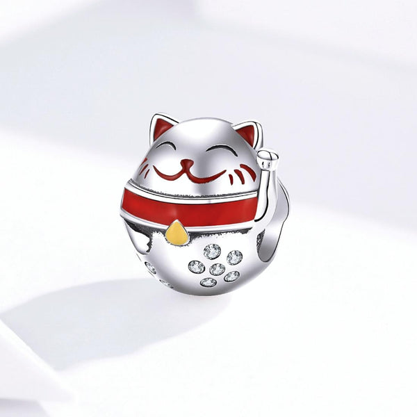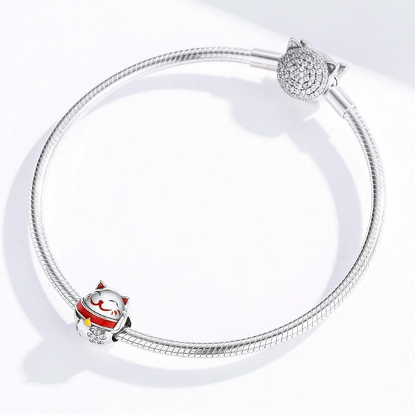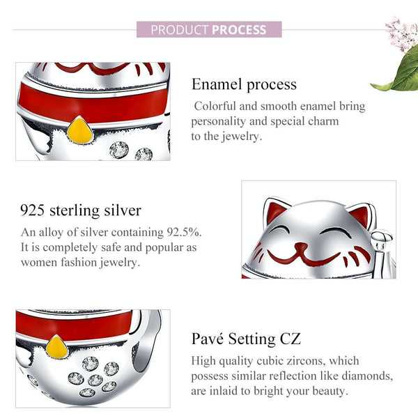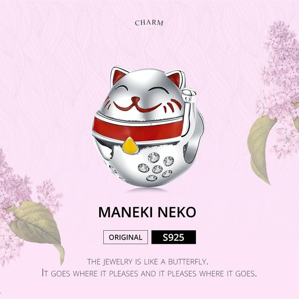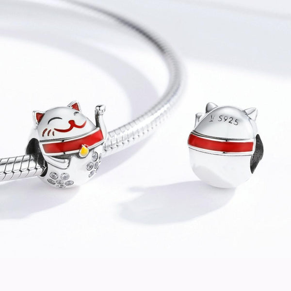 S925 Sterling Silver Fortune Cat Beads DIY Bracelet Necklace Accessories