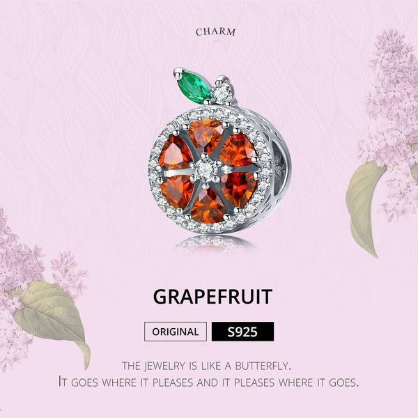S925 Sterling Silver Fruit Red Pomelo Beads DIY Bracelet Necklace Accessories
