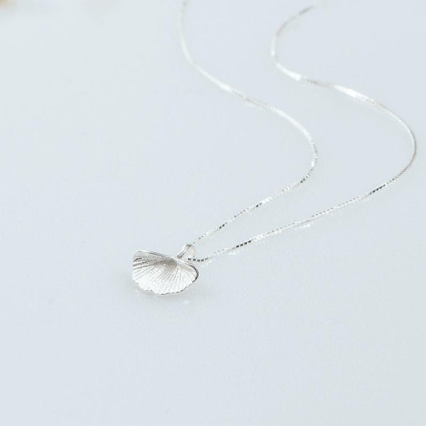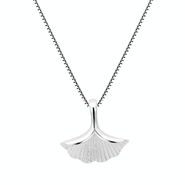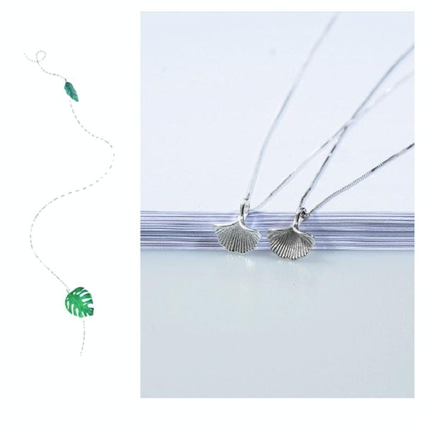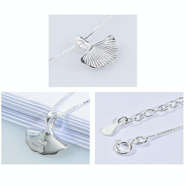 S925 Sterling Silver Ginkgo Leaf Pendant Necklace(White Gold)
