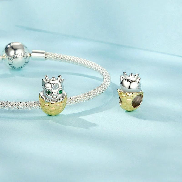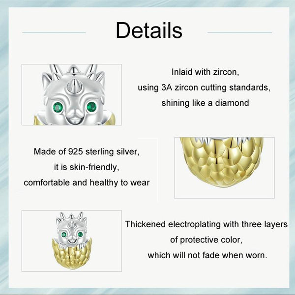 S925 Sterling Silver Gold-plated New Year Zodiac Cute Dragon Egg DIY Beads(SCC2721)