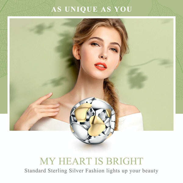 S925 Sterling Silver Golden Heart-shaped Beads DIY Bracelet Accessory