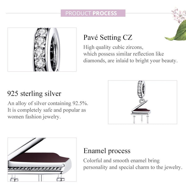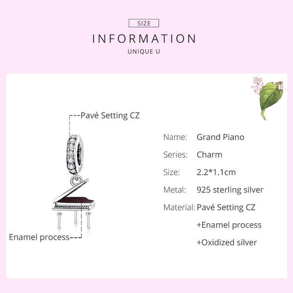 S925 Sterling Silver Grand Piano Pendant DIY Bracelet Necklace Accessories