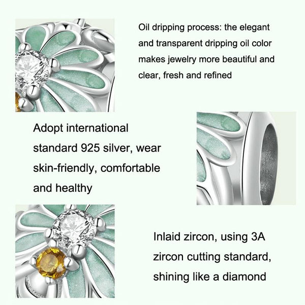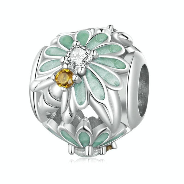 S925 Sterling Silver Green Gradient Daisy Bee DIY Beaded Bracelet Accessories Jewelry