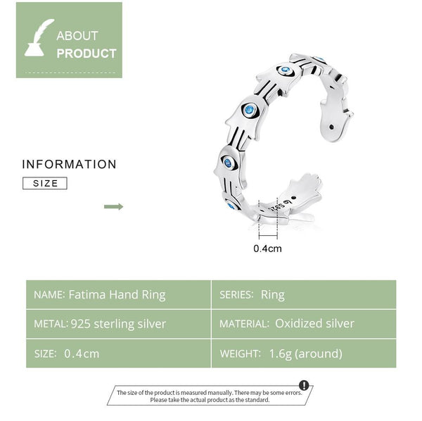 S925 Sterling Silver Hand Of Fatima Women Ring