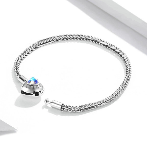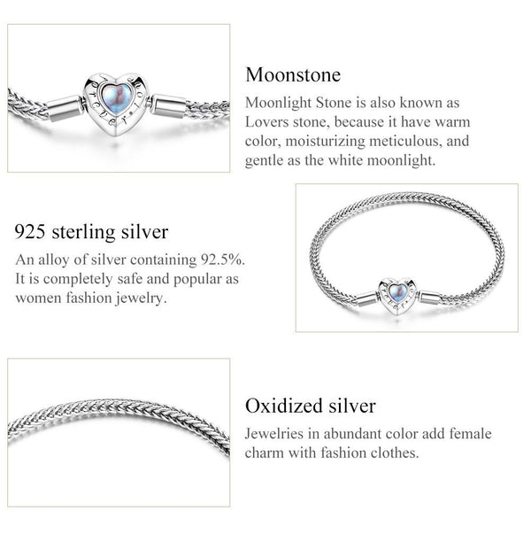 S925 Sterling Silver Heart Moonstone Bracelet Women Jewelry, Size:19cm
