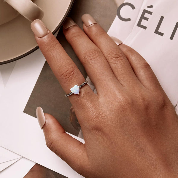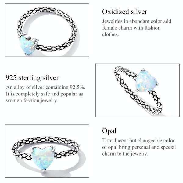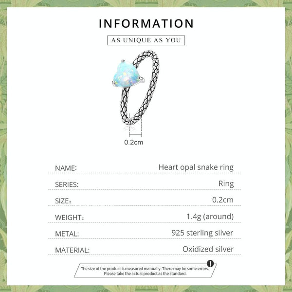S925 Sterling Silver Heart Opal Snake Pattern Women Ring, Size:7