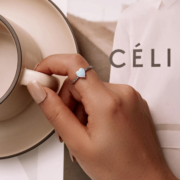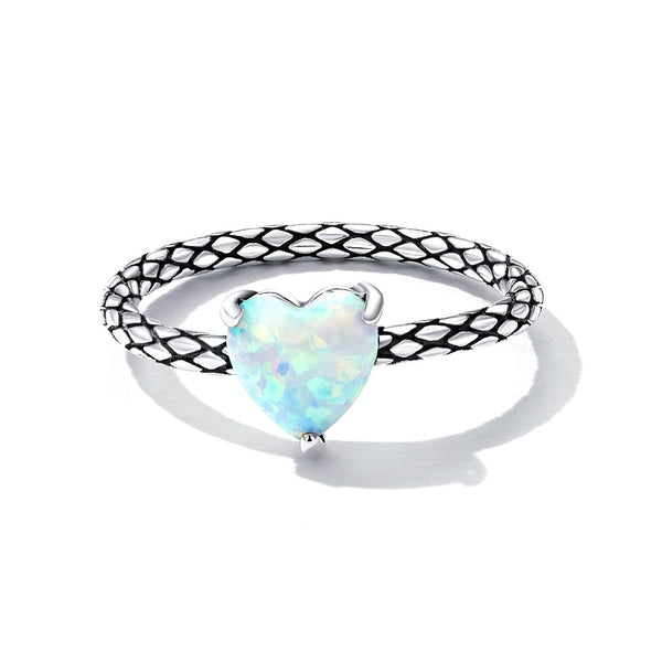 S925 Sterling Silver Heart Opal Snake Pattern Women Ring, Size:8