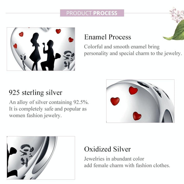 S925 Sterling Silver Heart-shaped Marriage Proposal Loose Beads DIY Bracelet Accessories