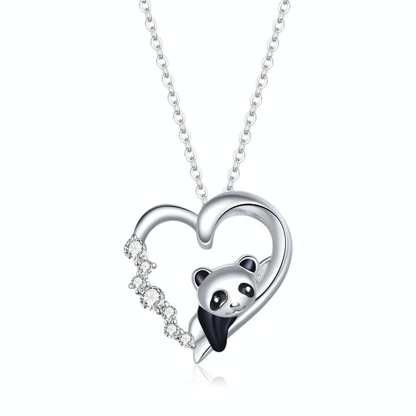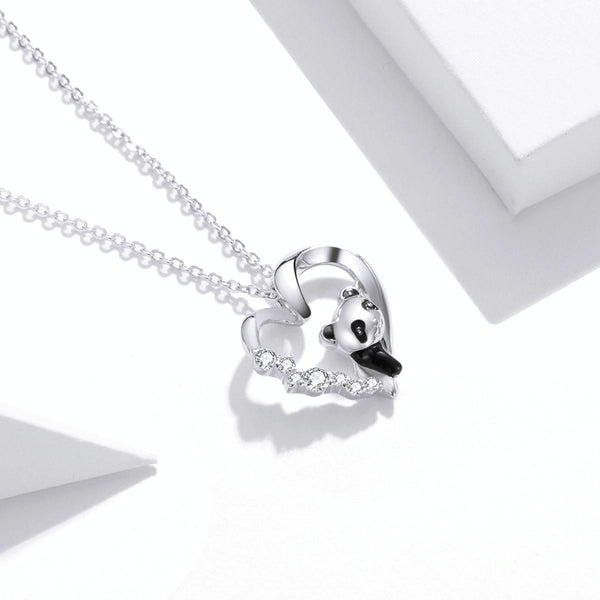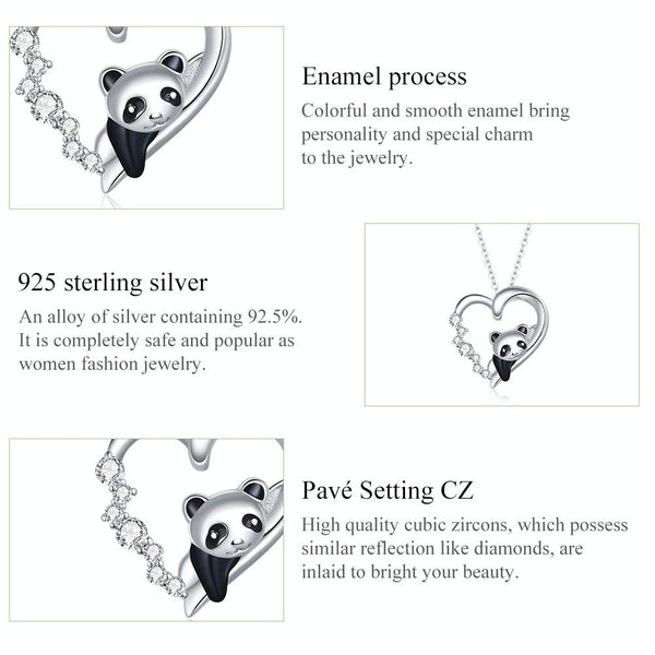 S925 Sterling Silver Heart-shaped Panda Women Nacklace Jewelry