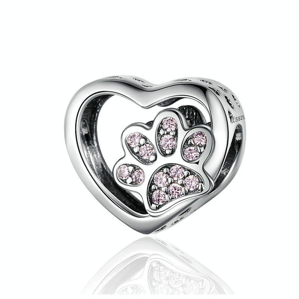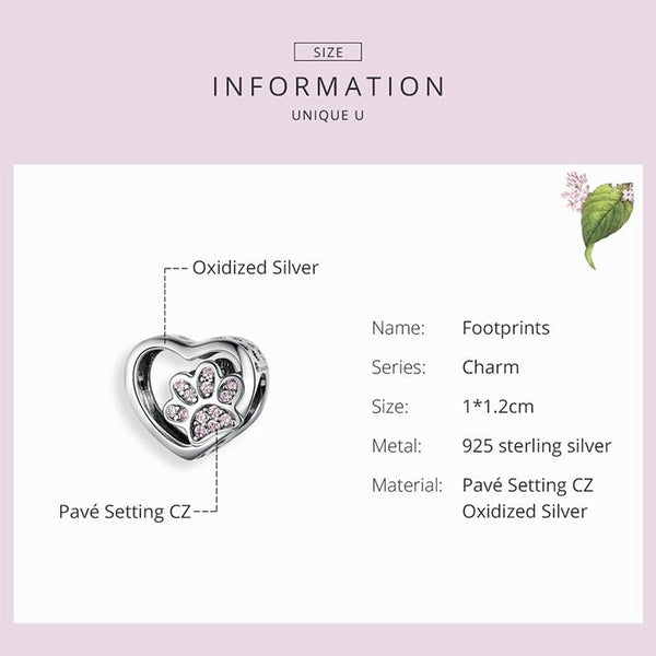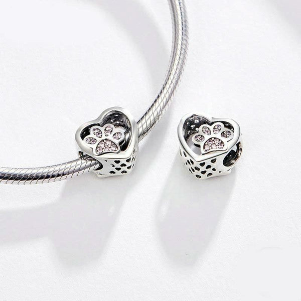 S925 Sterling Silver Heart Shaped Pet Paw Print Beads DIY Bracelet Beaded Accessories