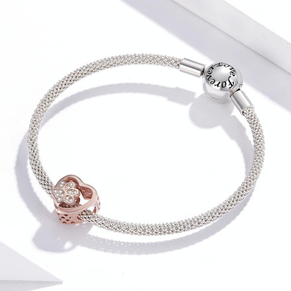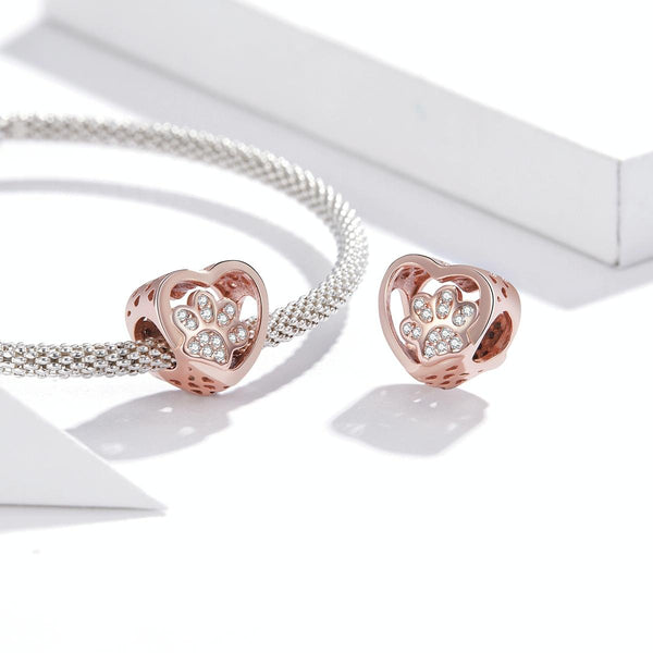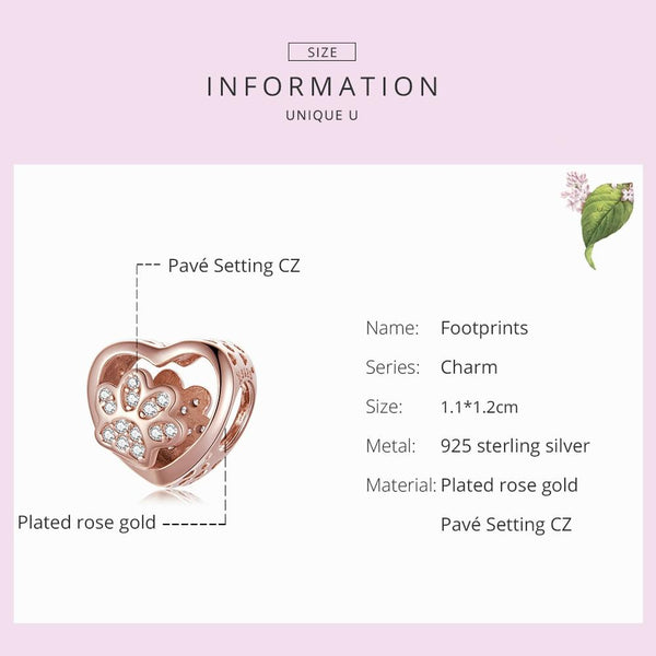 S925 Sterling Silver Heart Shaped Pet Paw Print Beads DIY Bracelet Beaded Accessories