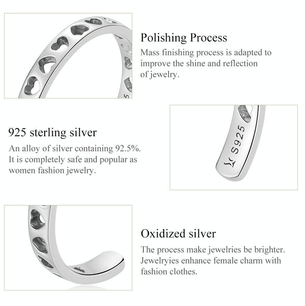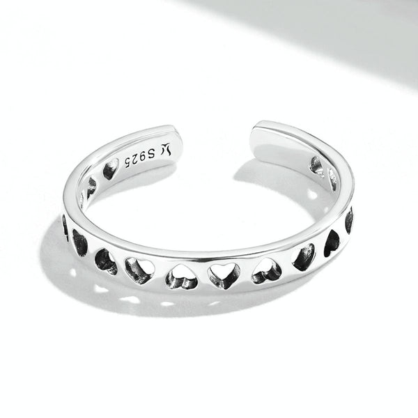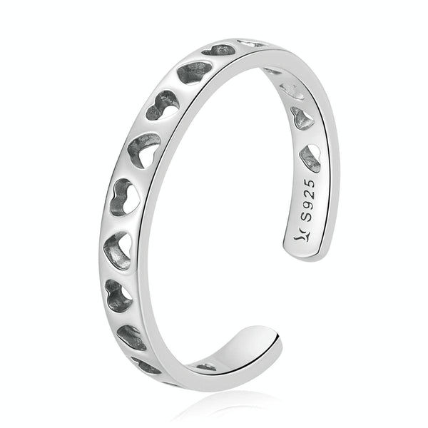 S925 Sterling Silver Hollow Heart Women Open Ring
