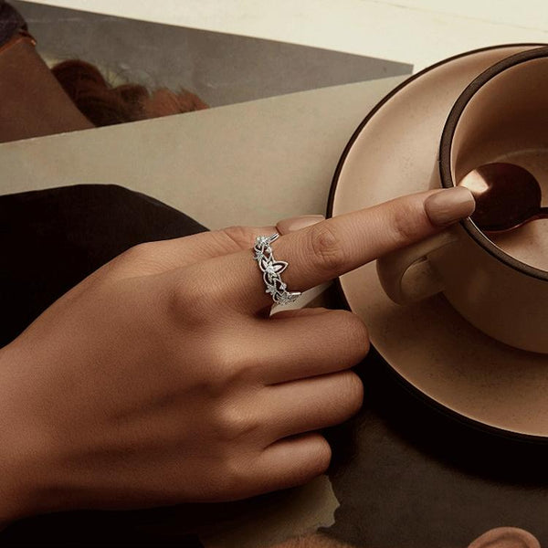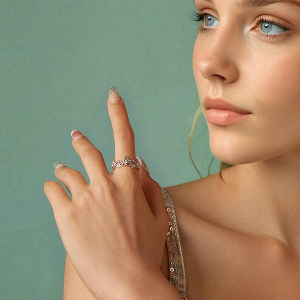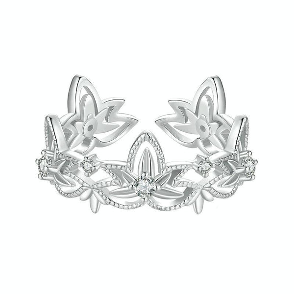 S925 Sterling Silver Hollow Lotus Open Ring Adjustable Flower Ring(BSR602-E)