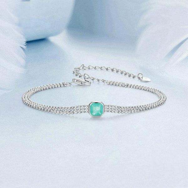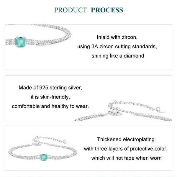 S925 Sterling Silver Ice Flower Transparent Blue-green Zircon Bracelet(BSB157)