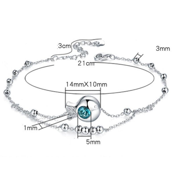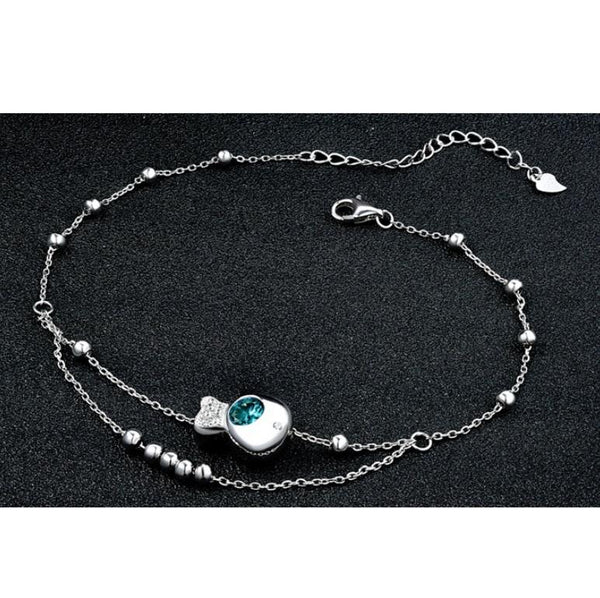 S925 Sterling Silver Inlaid Zircon Girls Foot Ornaments Double Round Bead Anklet(White Gold)