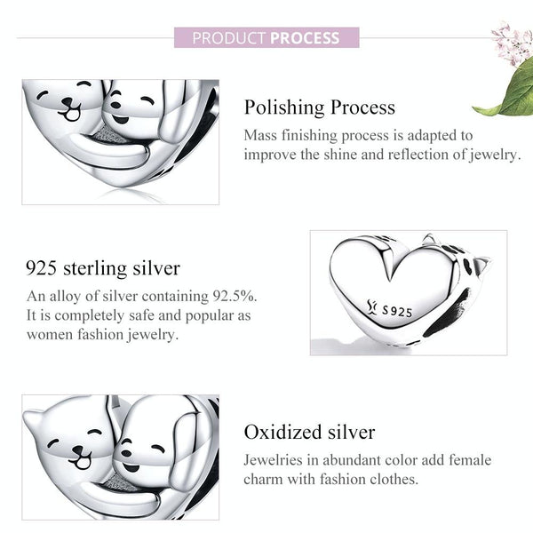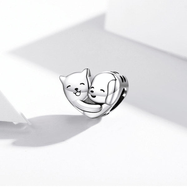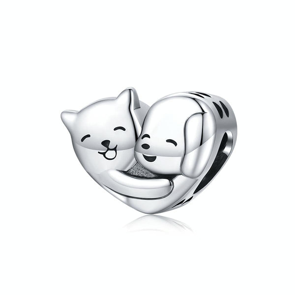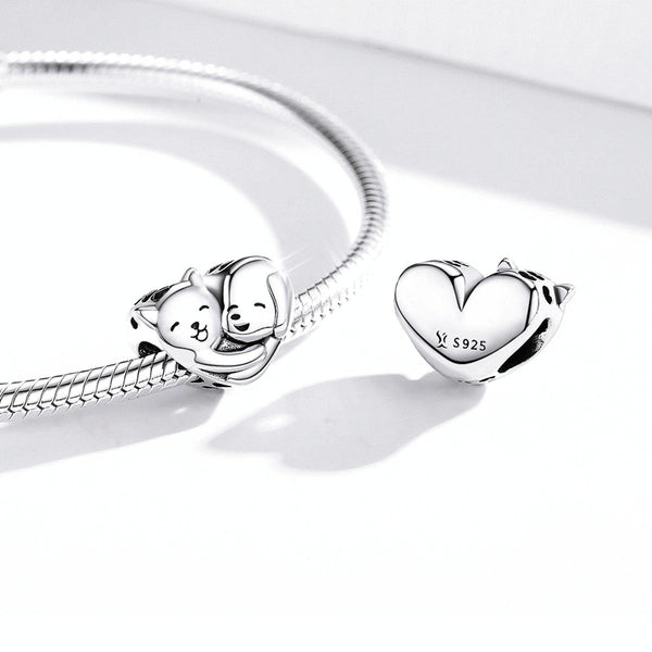 S925 Sterling Silver Kitten Puppy Heart-shaped Beads DIY Bracelet Necklace Accessories