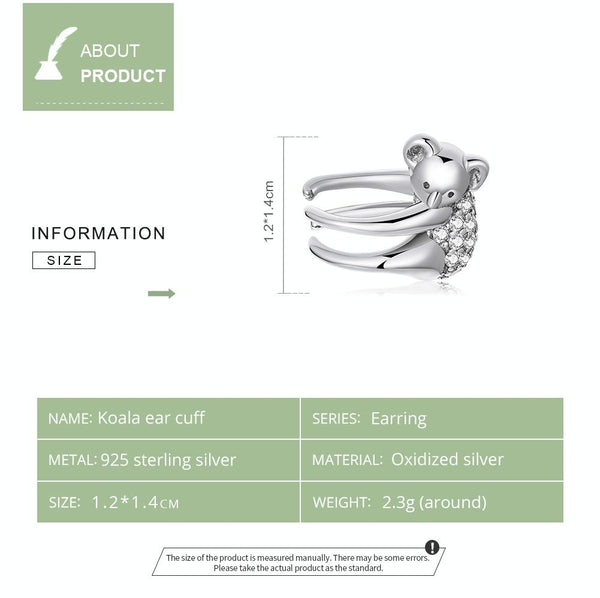 S925 Sterling Silver Koala Ear Bone Clamp Women Earrings