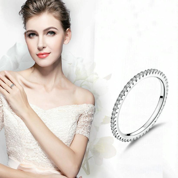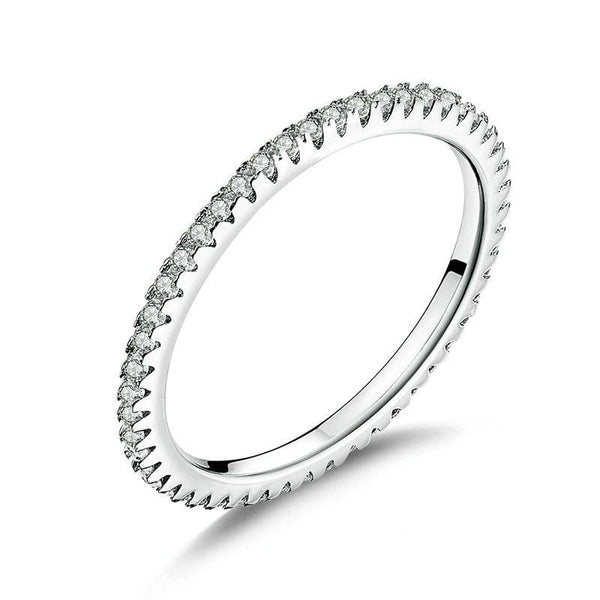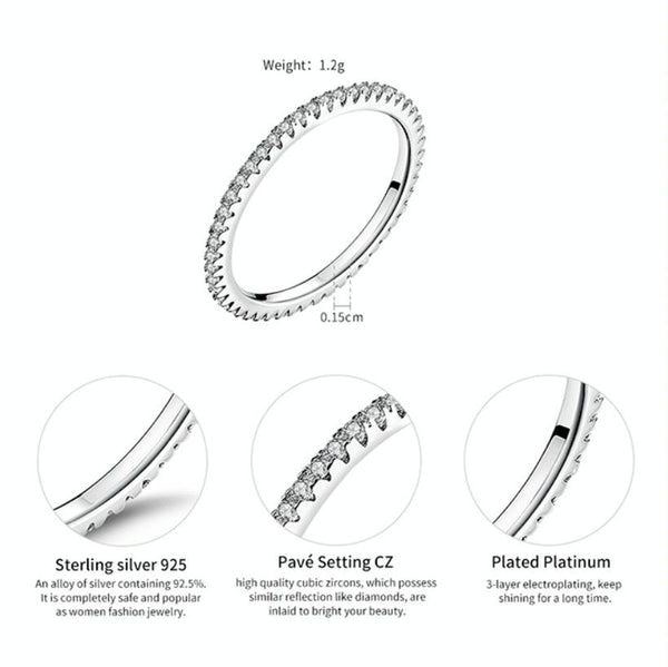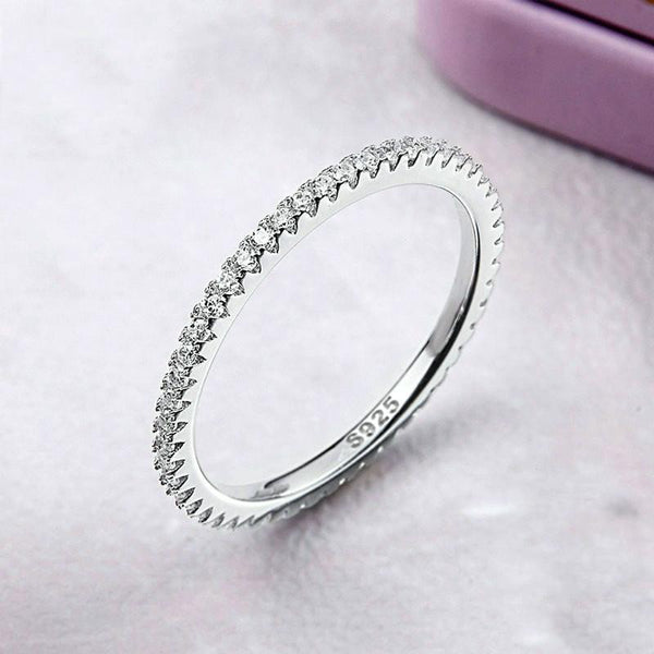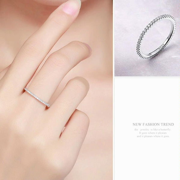 S925 Sterling Silver Ladies Fashion Ring Diamond Simple Ring, Size: 9