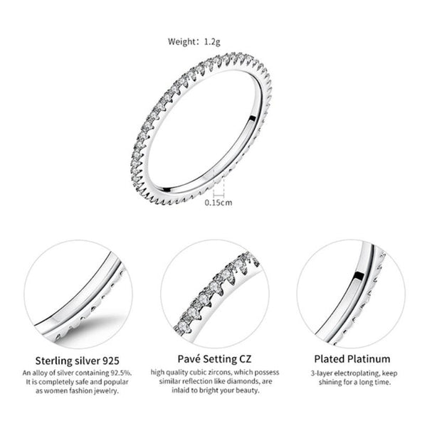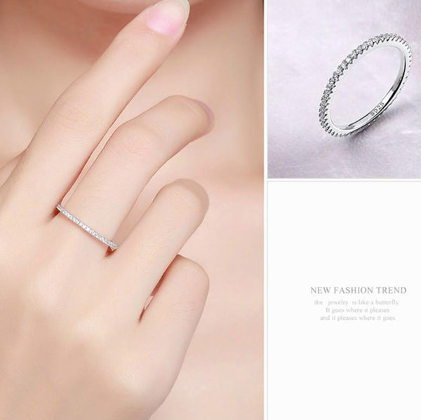 S925 Sterling Silver Ladies Fashion Ring Diamond Simple Ring, Size: 7