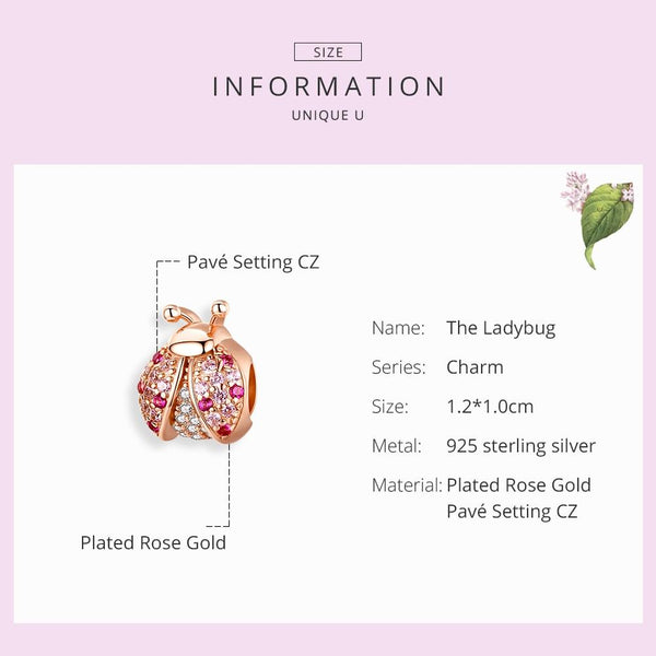 S925 Sterling Silver Ladybug Zircon Beads DIY Bracelet Necklace Accessories(Silver)