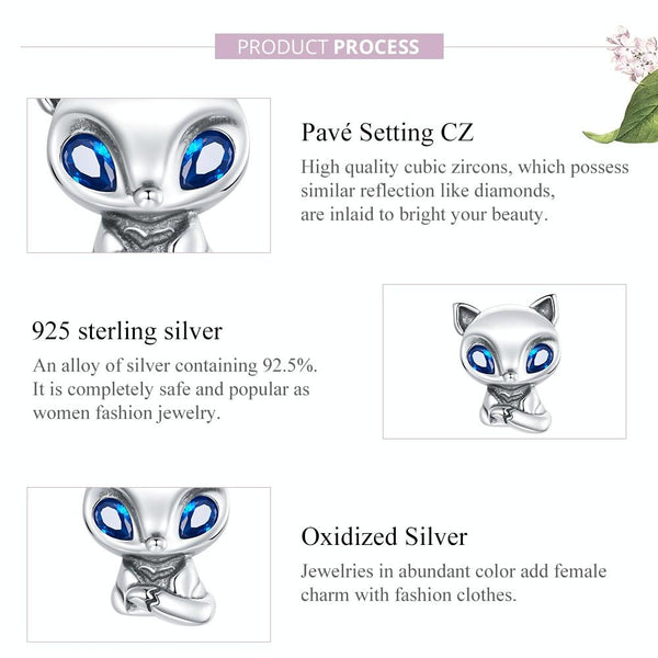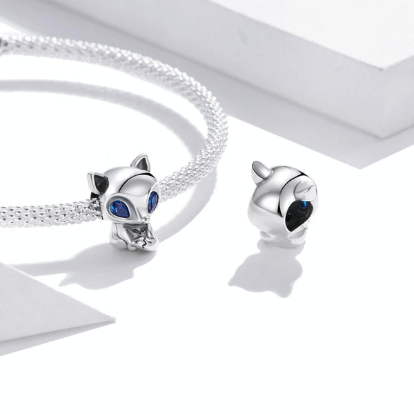 S925 Sterling Silver Lively Little Fox Beads DIY Bracelet Necklace Accessories