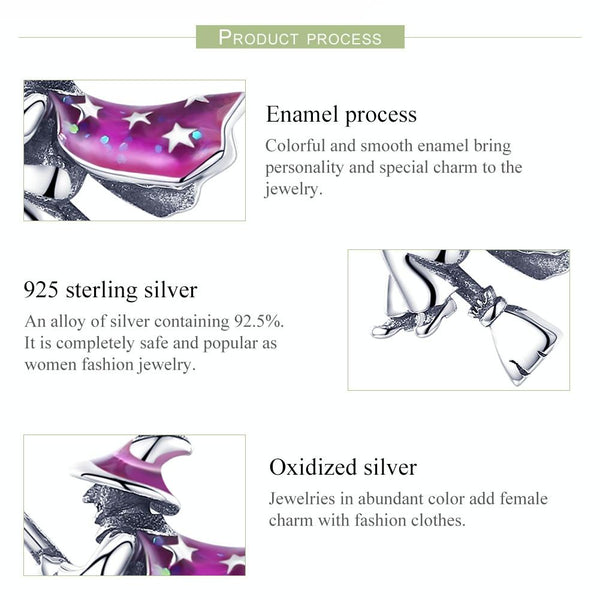 S925 Sterling Silver Magic Witch Broom Pendant Dripping Oil DIY Bracelet Accessories