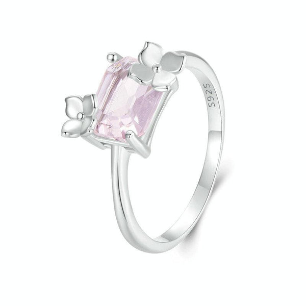 S925 Sterling Silver Main Stone Flower Sparkling Ring, Size: No. 8(SCR1012)