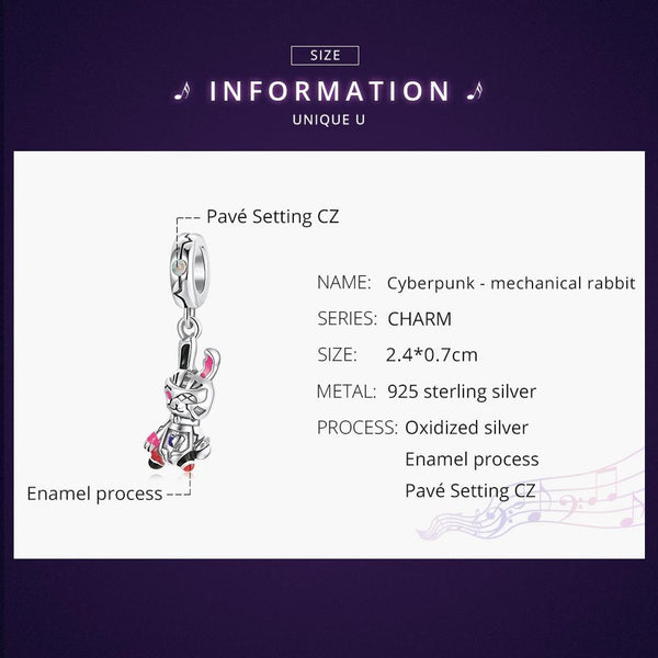 S925 Sterling Silver Mechanical Rabbit Pendant DIY Bracelet Necklace Accessories