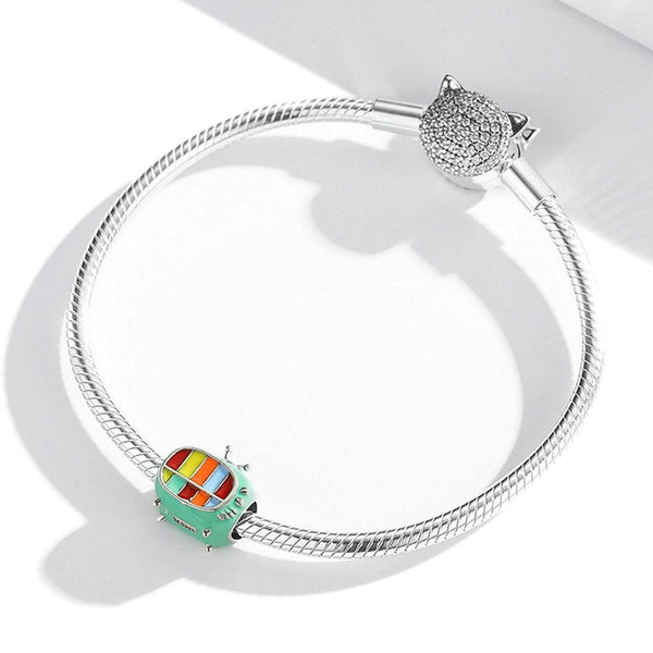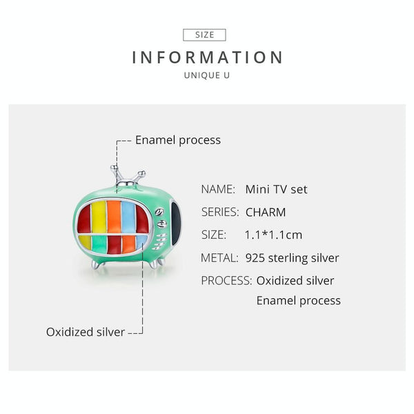 S925 Sterling Silver Mini Color TV Beads DIY Bracelet Necklace Accessories