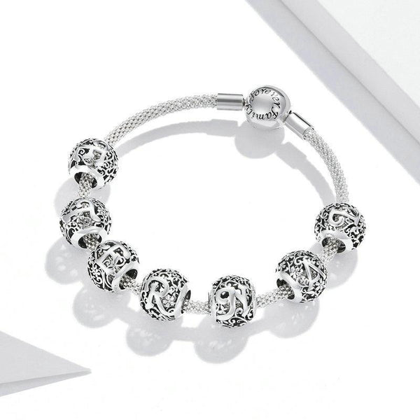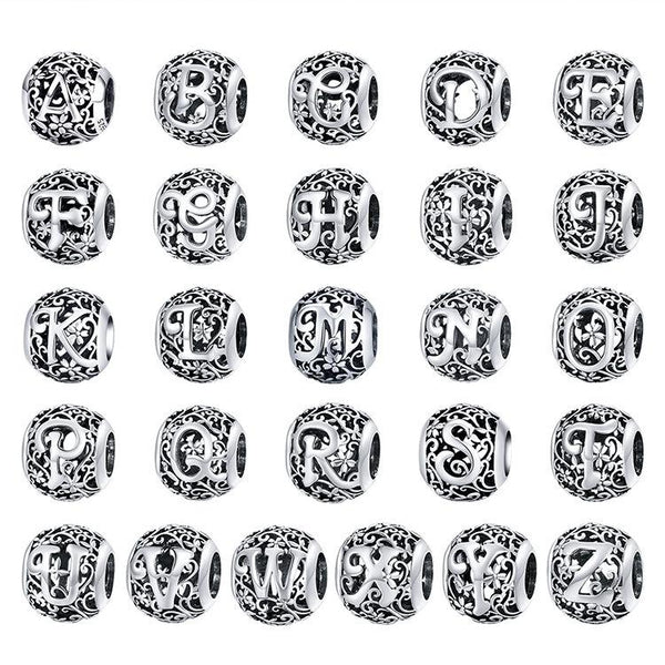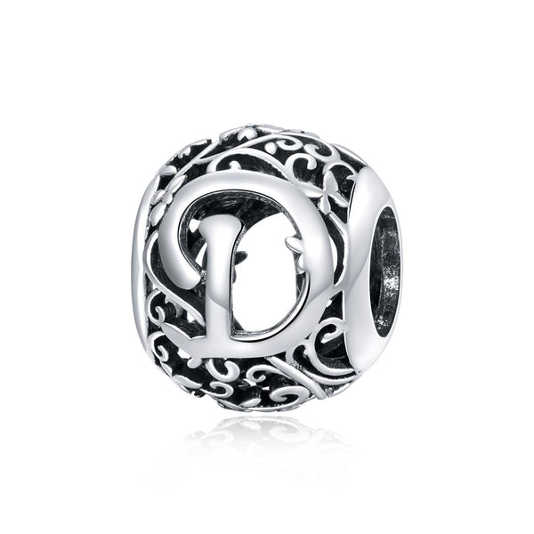 S925 Sterling Silver Mori Series Hollow Letters Beads DIY Bracelet Necklace Accessories(D)