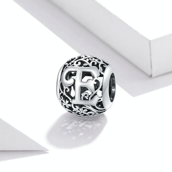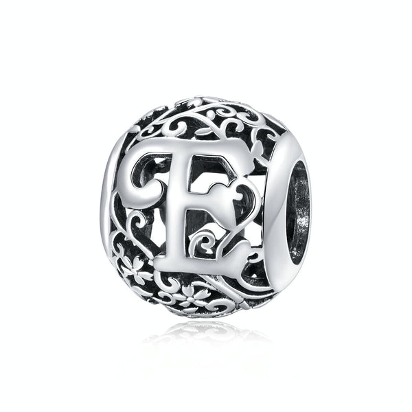S925 Sterling Silver Mori Series Hollow Letters Beads DIY Bracelet Necklace Accessories(E)