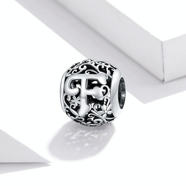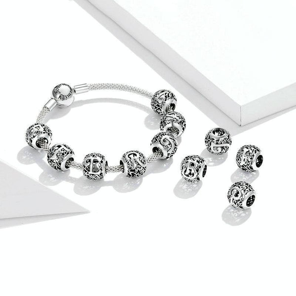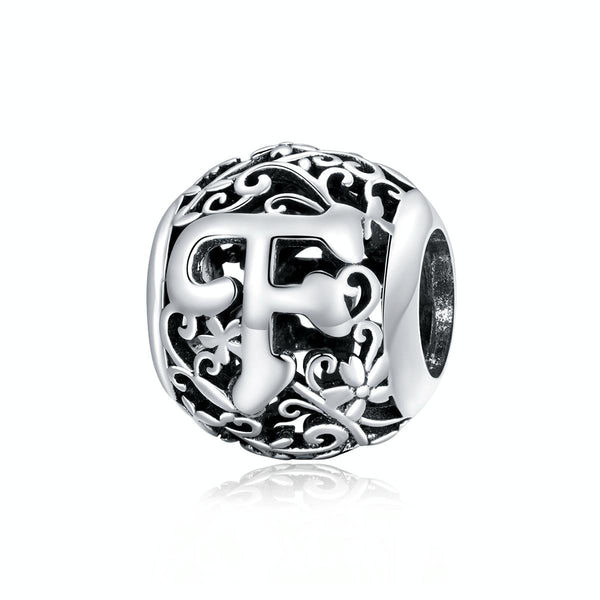 S925 Sterling Silver Mori Series Hollow Letters Beads DIY Bracelet Necklace Accessories(F)