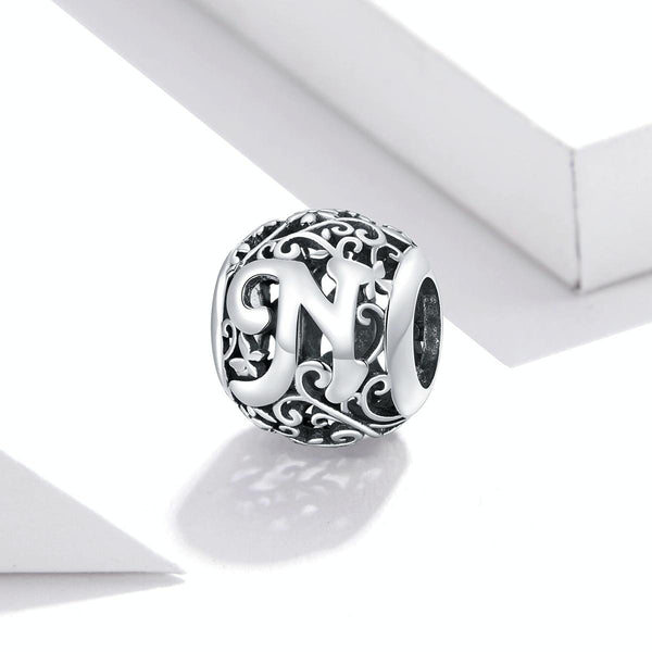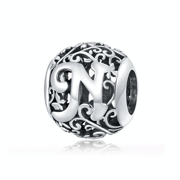 S925 Sterling Silver Mori Series Hollow Letters Beads DIY Bracelet Necklace Accessories(N)
