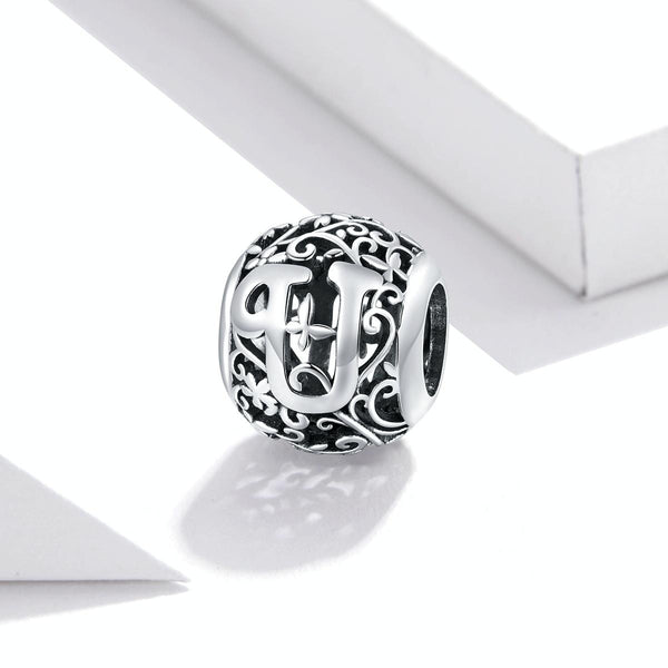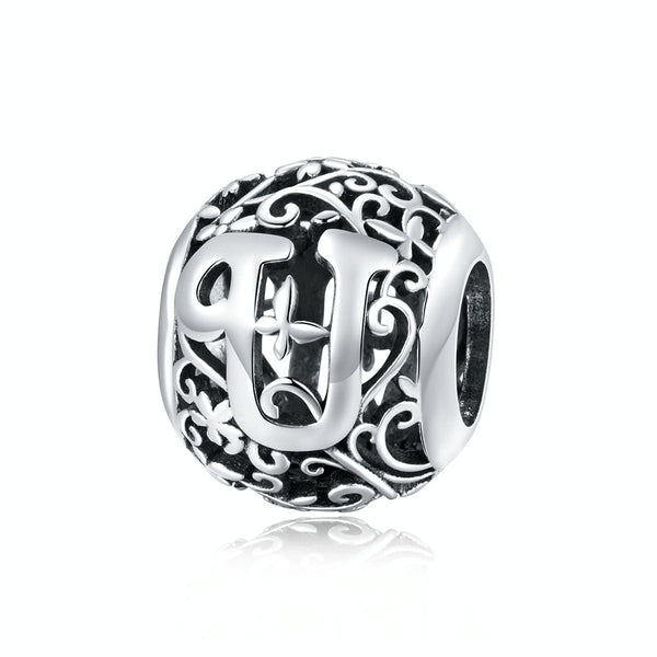 S925 Sterling Silver Mori Series Hollow Letters Beads DIY Bracelet Necklace Accessories(U)