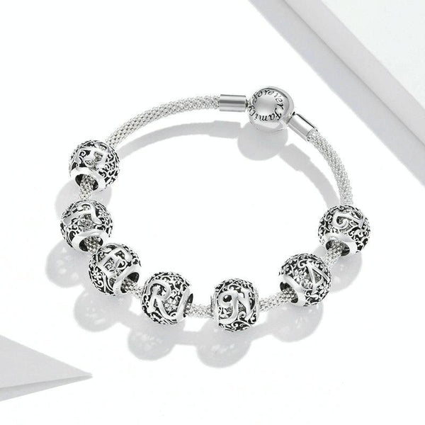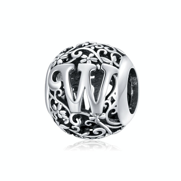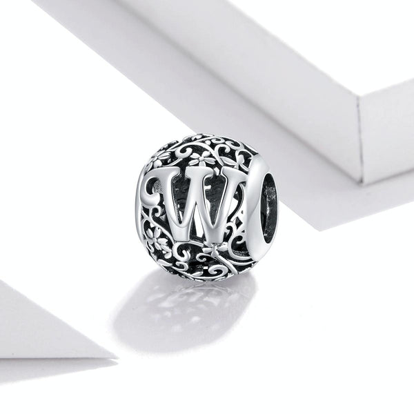 S925 Sterling Silver Mori Series Hollow Letters Beads DIY Bracelet Necklace Accessories(W)