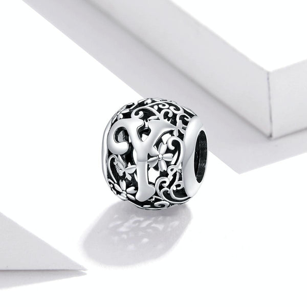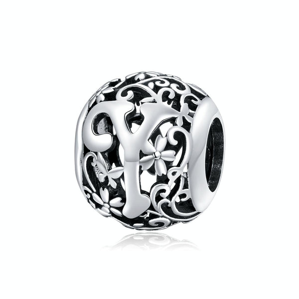 S925 Sterling Silver Mori Series Hollow Letters Beads DIY Bracelet Necklace Accessories(Y)