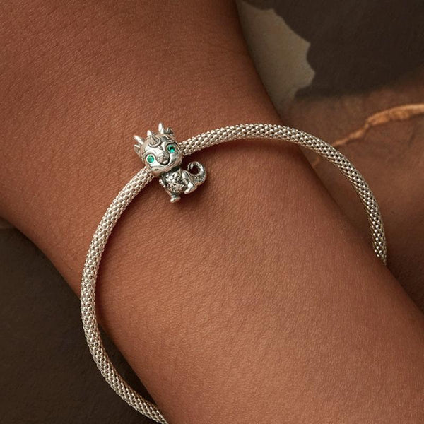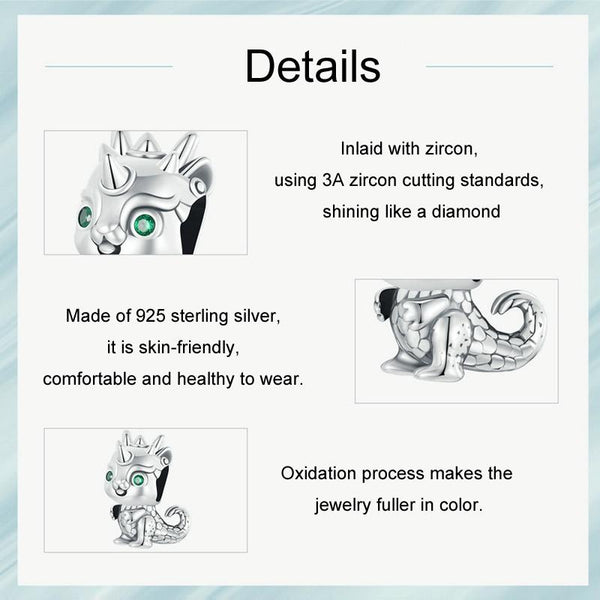 S925 Sterling Silver New Year Cute Little Dragon DIY Beads(SCC2720)