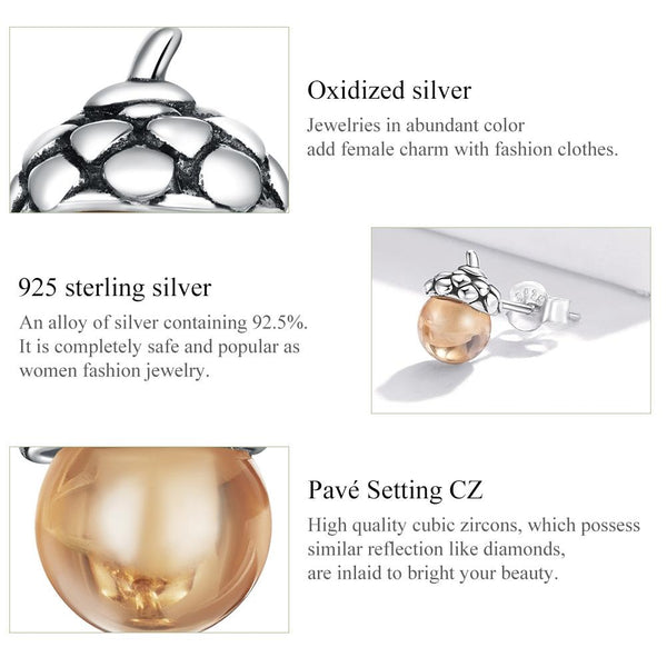 S925 Sterling Silver Oak Fruit Women Earrings Jewelry