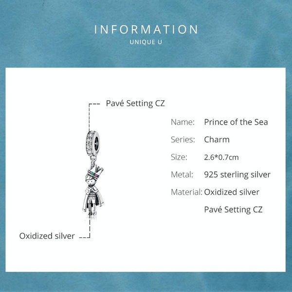 S925 Sterling Silver Ocean Prince Pendant DIY Bracelet Necklace Accessories