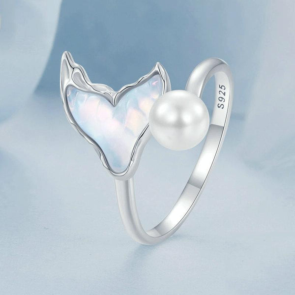 S925 Sterling Silver Ocean Style Fantasy Fishtail Open Adjustable Ring(BSR544-E)