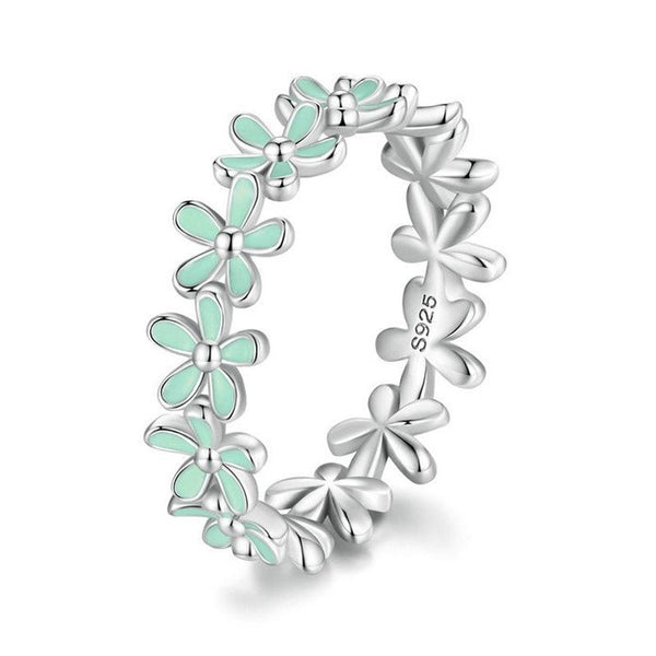 S925 Sterling Silver Oil Dripping Flower Arrangement Ring, Size: No. 10(SCR931-GN Green)