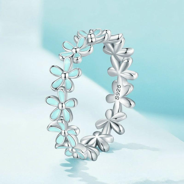 S925 Sterling Silver Oil Dripping Flower Arrangement Ring, Size: No. 5(SCR931 Blue)